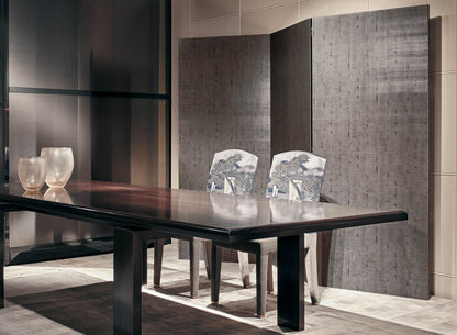 Carta da parati "Bohème" della collezione Precious Fibers firmata Armani Casa e prodotta da Jannelli&Volpi; realizzata in seta e lurex, disponibile in 5 varianti di colore.