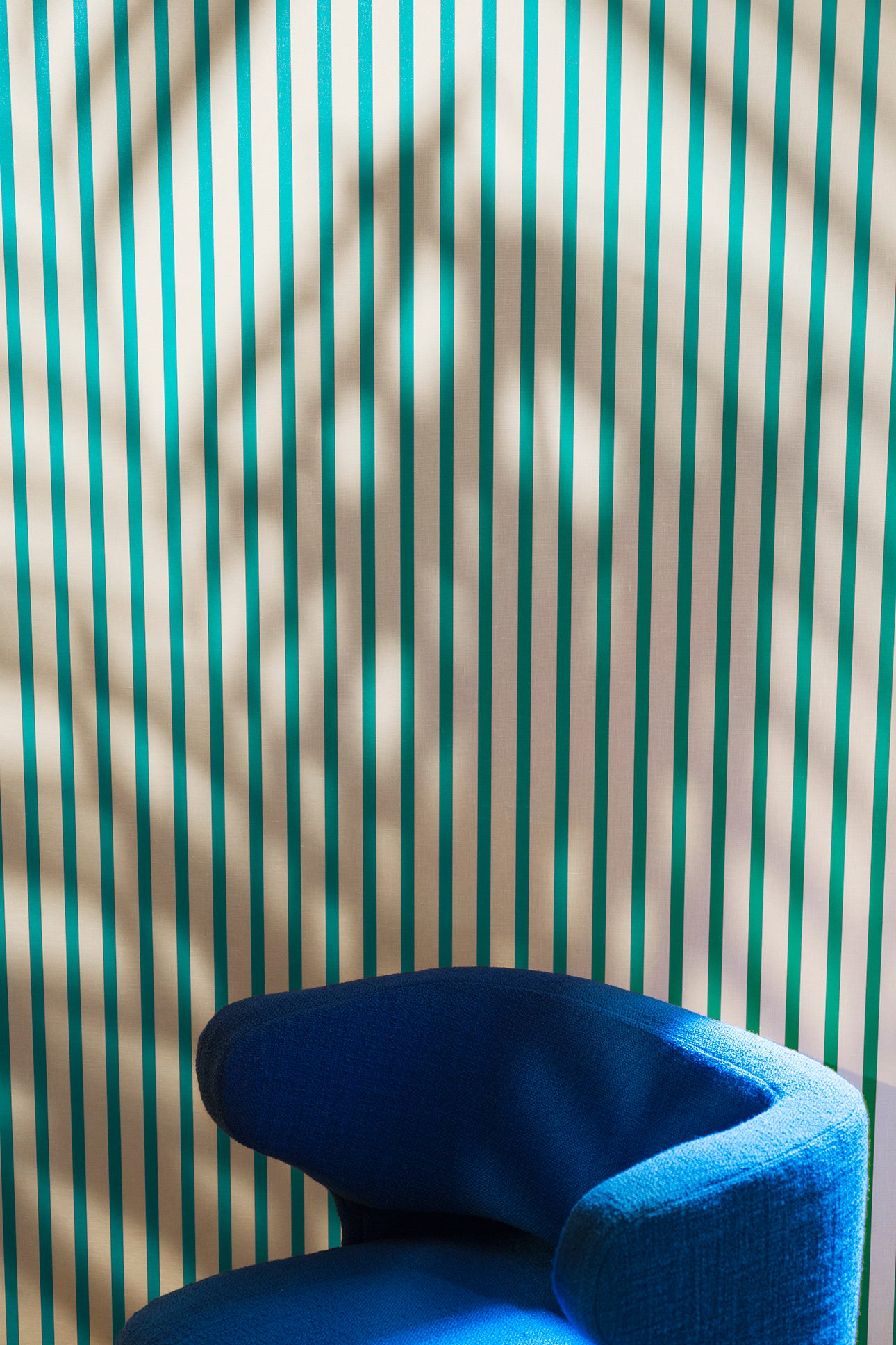 Carta da parati “Deauville” firmata Dedar Milano, realizzato in garza di l’inno fiammata è animata da vivaci righe bicolori. Disponibile in 8 varianti di colore.