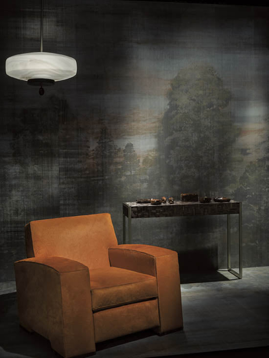 Prezioso panello murale "Macbeth" della collezione Precious Fibres firmata Armani Casa e prodotta da Jannelli&Volpi; realizzato in seta e lurex e disponibile in 2 dimensioni: