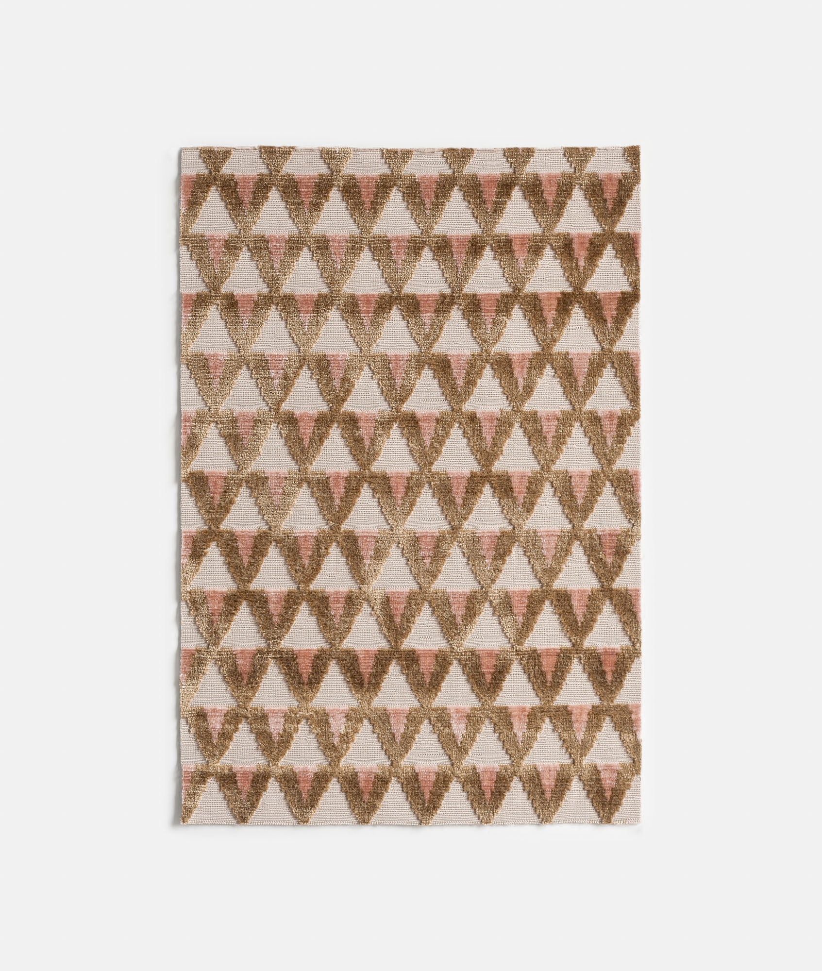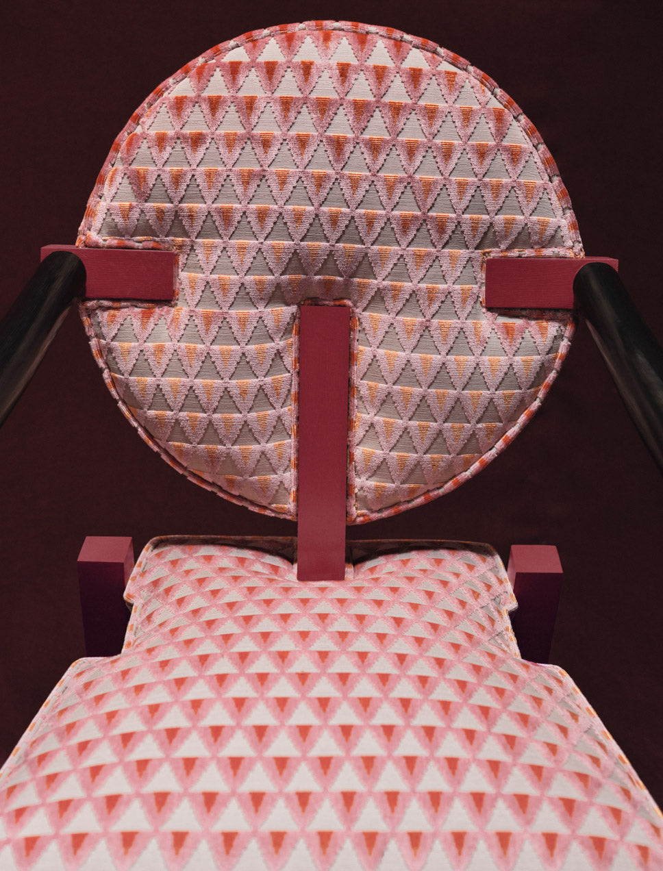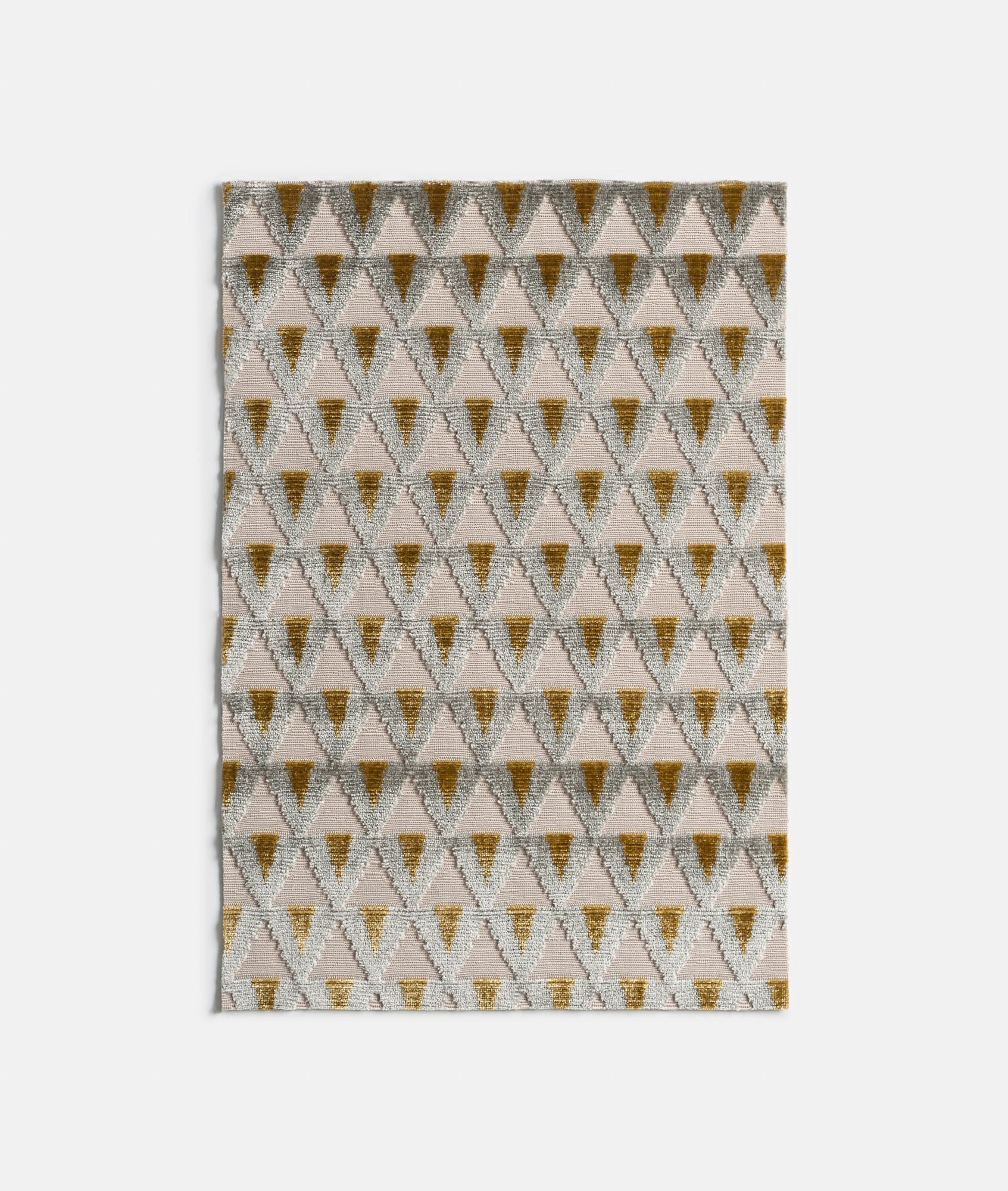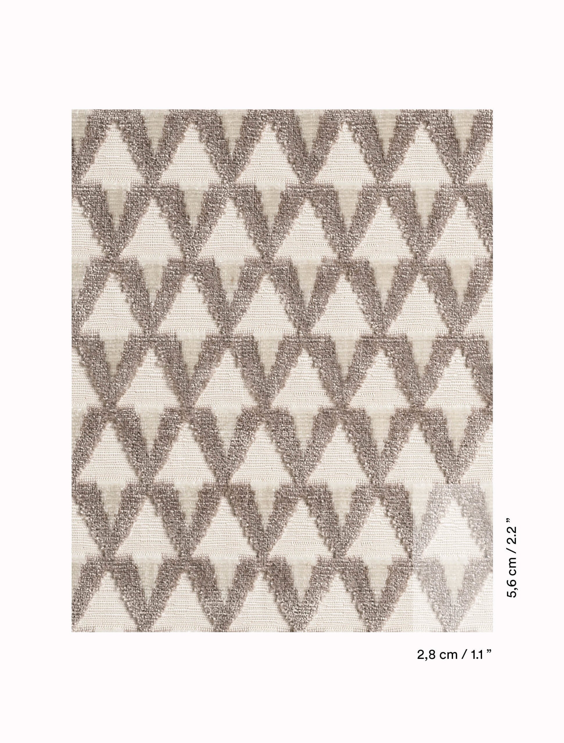 Elegante velluto jacquard “Amuleto” firmato Dedar Milano; la gamma cromatica intensa e il motivo geometrico triangolare ripetuto su un fondo ottoman materico, evocano il mondo della gioielleria. Disponibile in 10 varianti di colore.