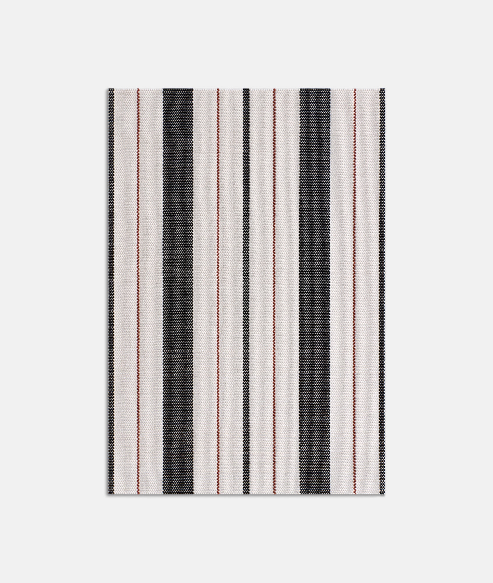 Tessuto “Andatura” firmato Dedar Milano, realizzato in filato riciclato, ignifugo, lavabile e resistente all’abrasione e agli agenti atmosferici. Una riga classica con un punto di colore che dona vivacità e ritmo; disponibile in 4 varianti di colore.