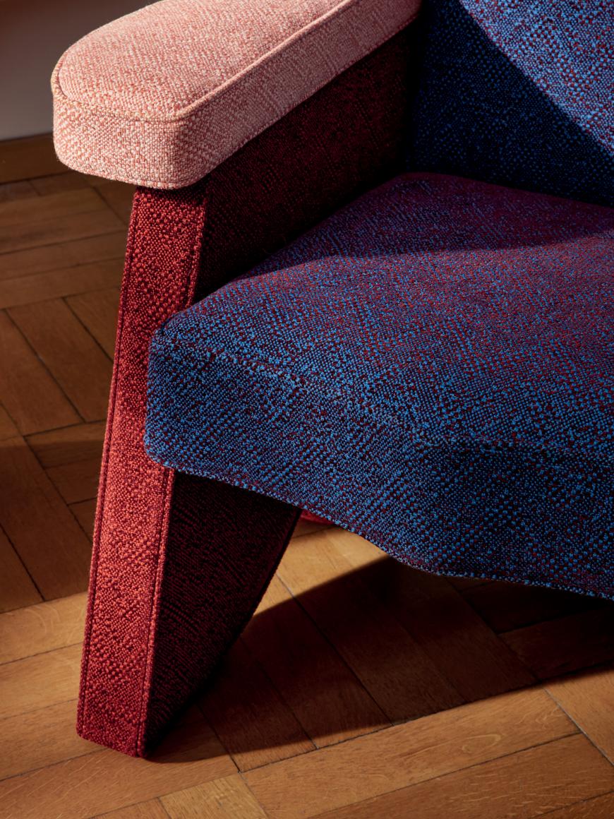 Un tessuto in lana e ciniglia, caratterizzato dalla rilettura del tipico disegno chevron, un motivo che ritorna periodicamente nei tessuti per arredamento. Una nuova interpretazione del tipico intreccio a spina di pesce: ingigantito e reso irregolare, nelle colorazioni ricorda un lavoro a maglia vintage. Per Marple è stato utilizzato un pregiato filato di lana neozelandese sapientemente filata e ritorta in Italia, e mescolata ad un filo di ciniglia. La lana, per sua natura opaca, viene vivacizzata dalla ciniglia che regala un tocco di luce in trama. Molto resistente, Marple è un tessuto naturale con caratteristiche uniche di resistenza, ignifugo, ideale per rivestimento. Adatto per imbottiti.