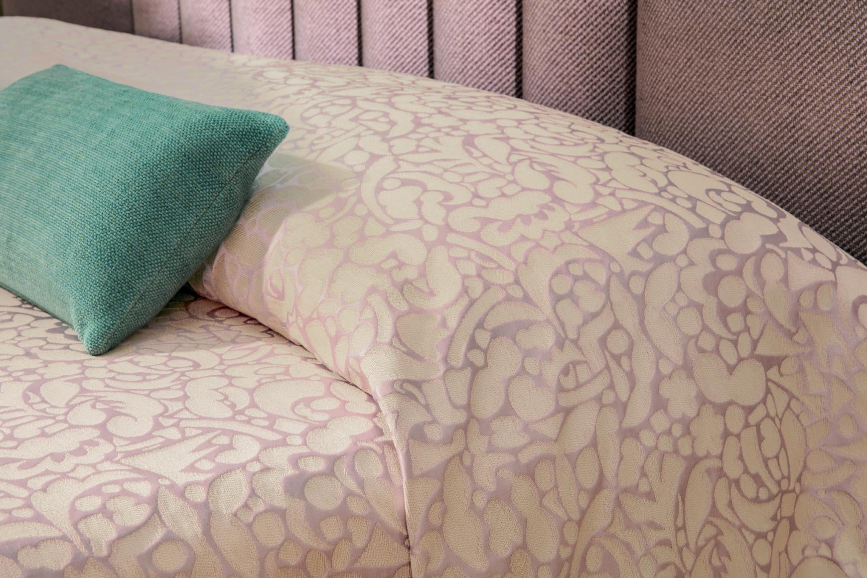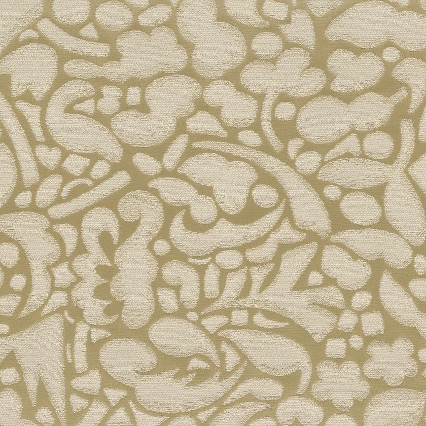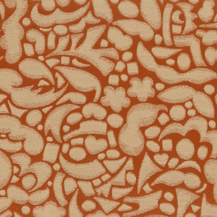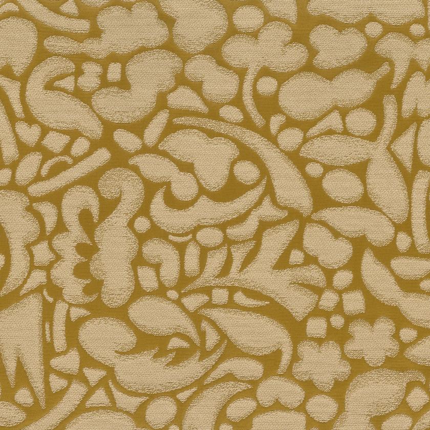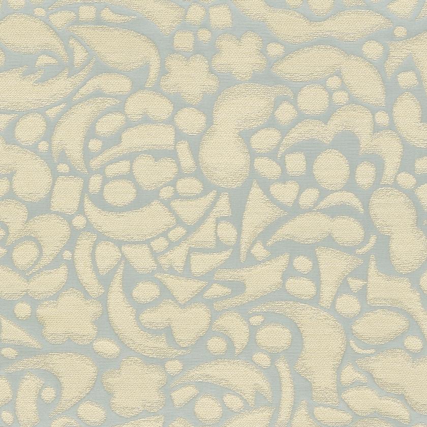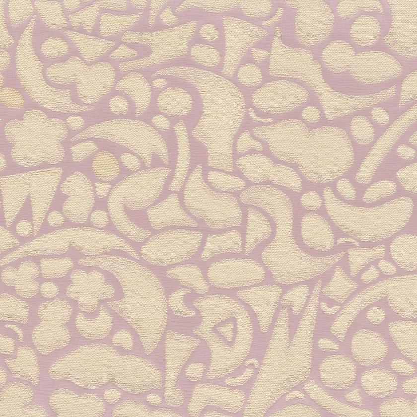 Un lampasso elegante dall’aspetto serico. Il disegno del tessuto presenta dei motivi vegetali stilizzati, ripresi da un disegno per kimono datato 1927. Interessante il contrasto fra il fondo raso e il motivo a rilievo realizzato con un innovativo filato frisé ecosostenibile, derivato dagli scarti di lavorazione del cotone. Molto resistente, è adatto per un uso intenso.