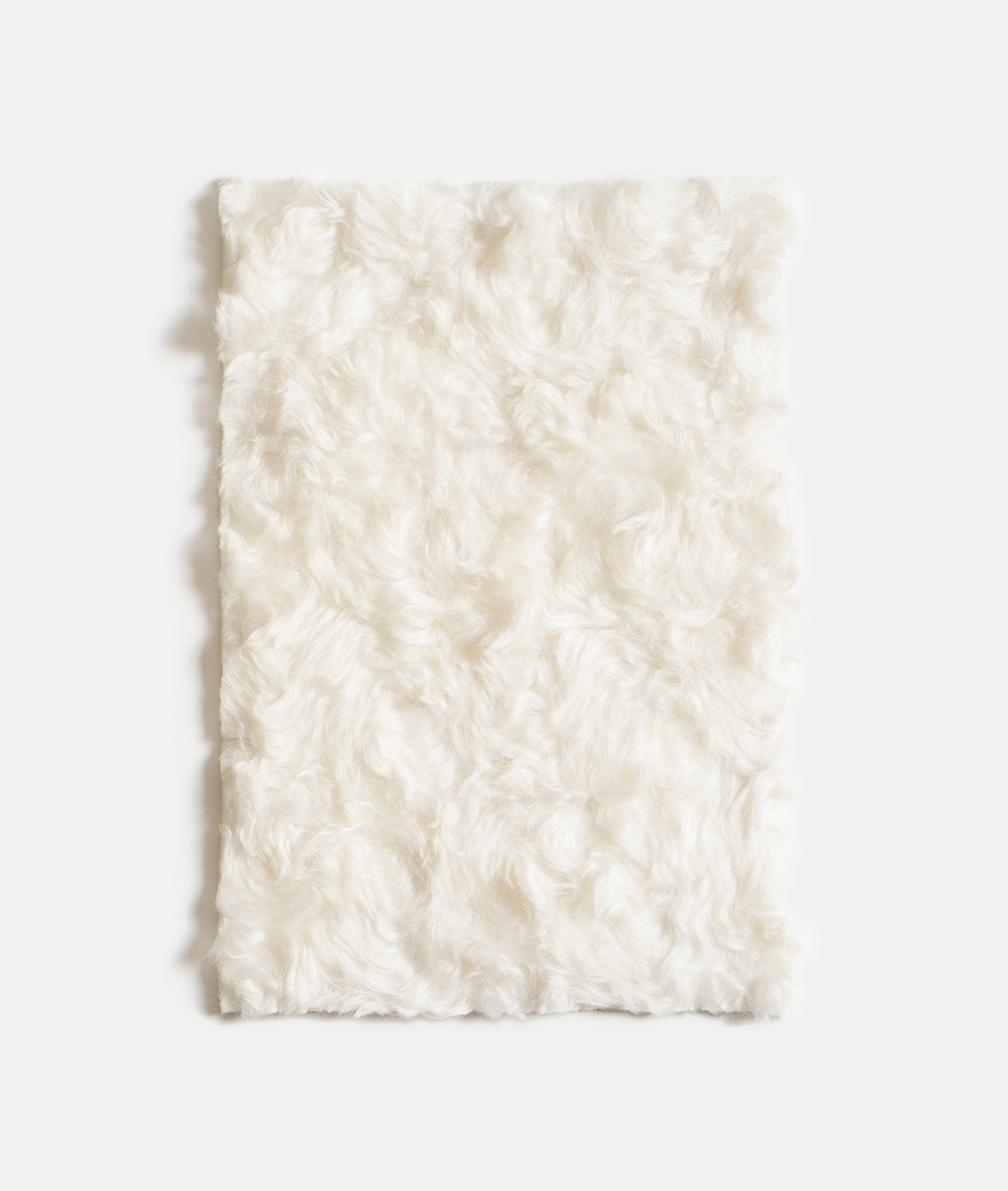Un pelo lungo e riccio in nobile fibra di mohair sprigiona una luce candida. È un velluto spettinato, che riprende la filosofia d’arredo dei decoratori francesi di primo Novecento: vestire le case col tessuto, tra minimalismo ed eleganza, aprendosi a nuovi immaginari d’uso, oltre a sedute e cuscini. Il mohair offre un’alternativa naturale e voluttuosa, come una pelliccia.