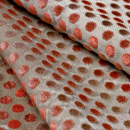 Velluto cesellato, taglio e riccio, a due corpi, su fondo metallizzato. La nuova versione del motivo, disegnato da Gio Ponti e tessuto a mano nel 1934 dalla stessa Rubelli, presenta le caratteristiche del disegno originale. Adatto ad un uso leggero.