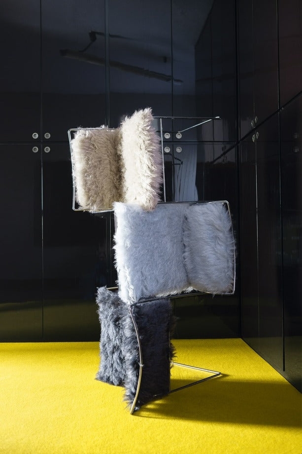 Esuberanza e voluttà animano un pregiato velluto in kid mohair, dal pelo altissimo e irresistibile al tatto. È una “pelliccia” tessile che si affida unicamente alla tosatura. Tra un bianco puro come il vello di agnello e tinte fresche e luminose, trasforma gli ambienti con audace raffinatezza. Ideale per uso seduta, si apre a nuovi immaginari d’uso.