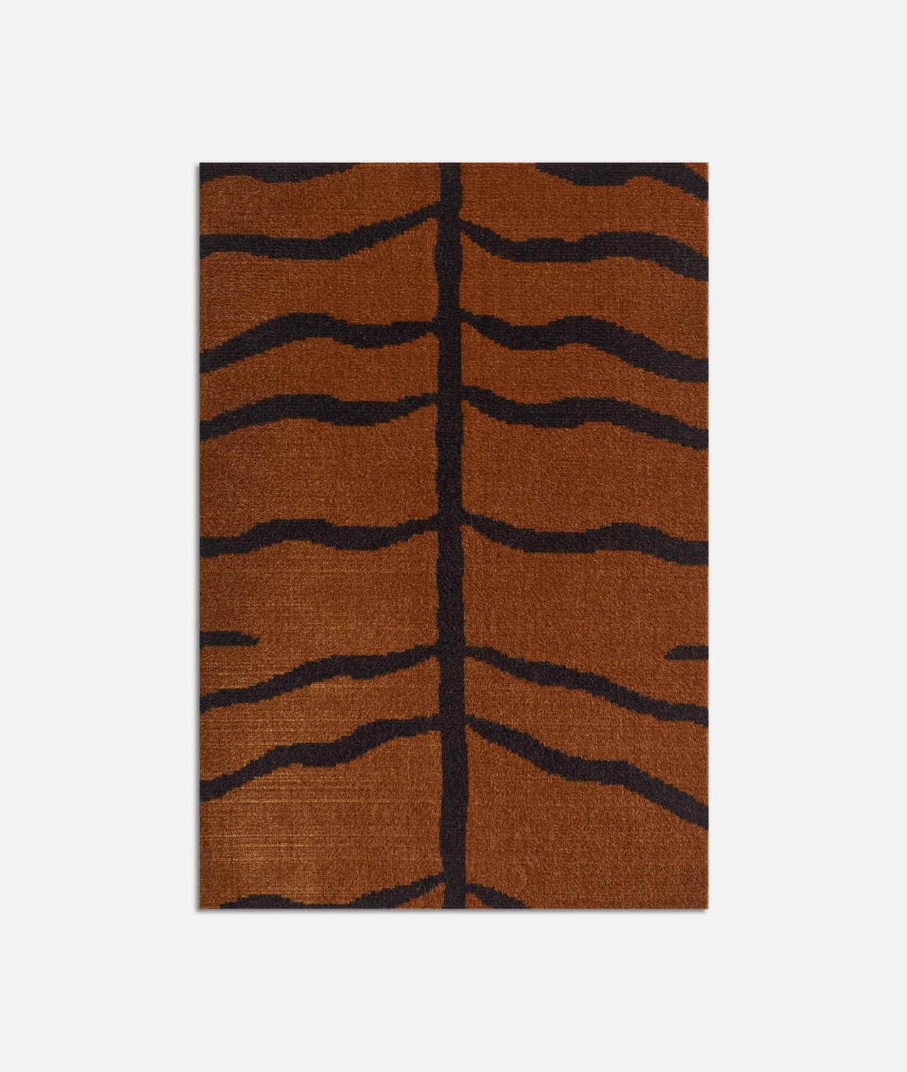 Tessuto “A Tiger In The Orangerie” firmato Dedar Milano. Un velluto jacquard dal colore vivido interpreta il manto della tigre in una versione idealizzata dalla mano soffice.