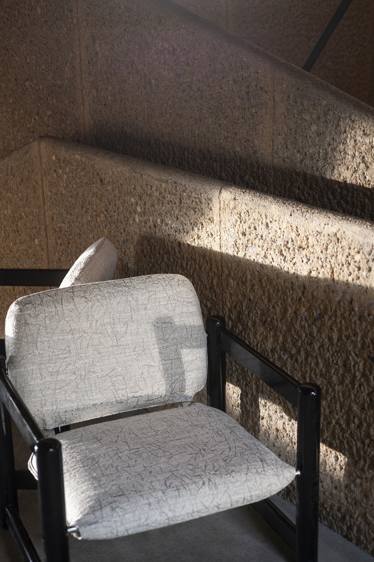 Uno jacquard materico dallo spirito laniero accoglie segni scolpiti con echi ancestrali. La grafia enigmatica e immediata del disegno si oppone a un’anima da falso unito di estrema complessità tecnica. Ricche trame materiche muovono l’ordito a tre colori e generano il senso di un’incisione che solca il tessuto. Bagliori metallici appena accennati si intravedono nella variante dai toni più caldi, così come in quella dai toni più freddi. Dalla mano strutturata e piena, è resistente e versatile nell’uso. Con trattamento idrorepellente, è ideale per uso seduta.